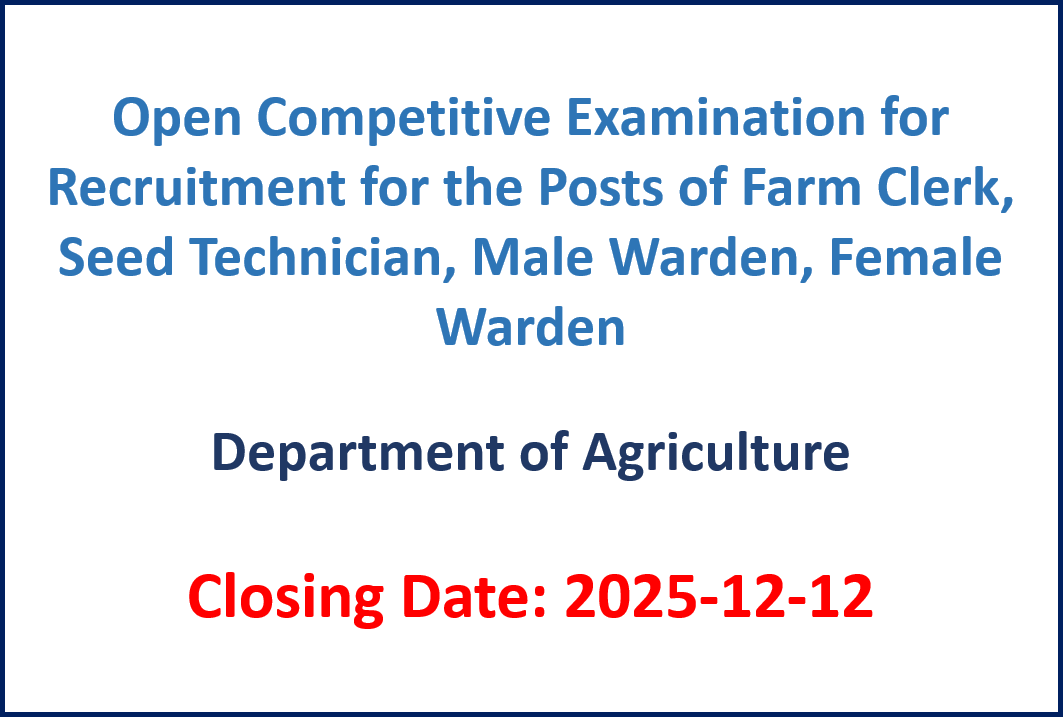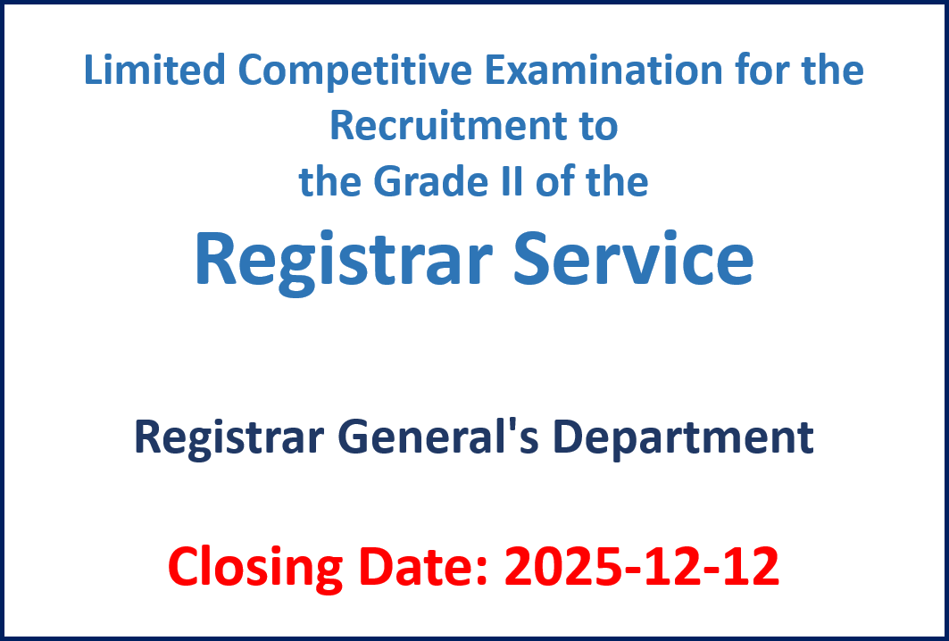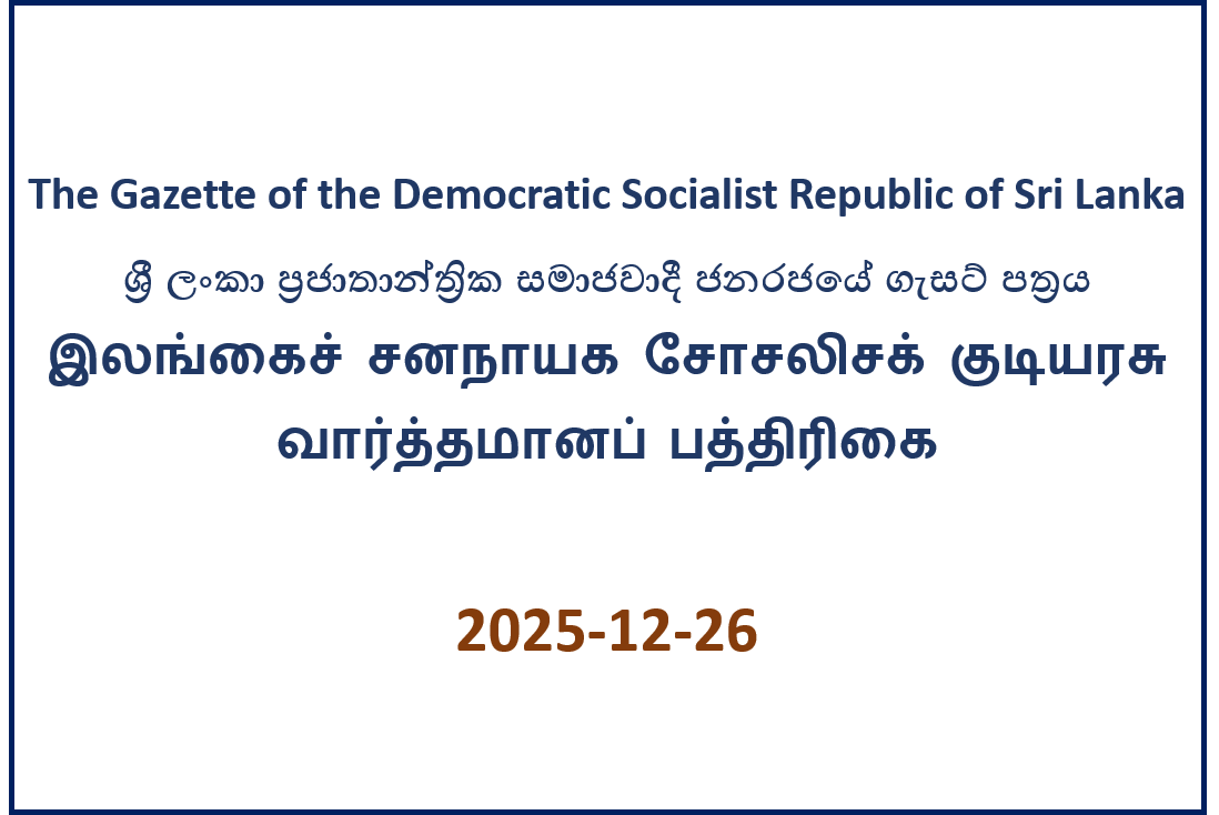 Closing Date: 2025-12-19 Details - Sinhala Details - English Source : Government Gazette 2025-12-12