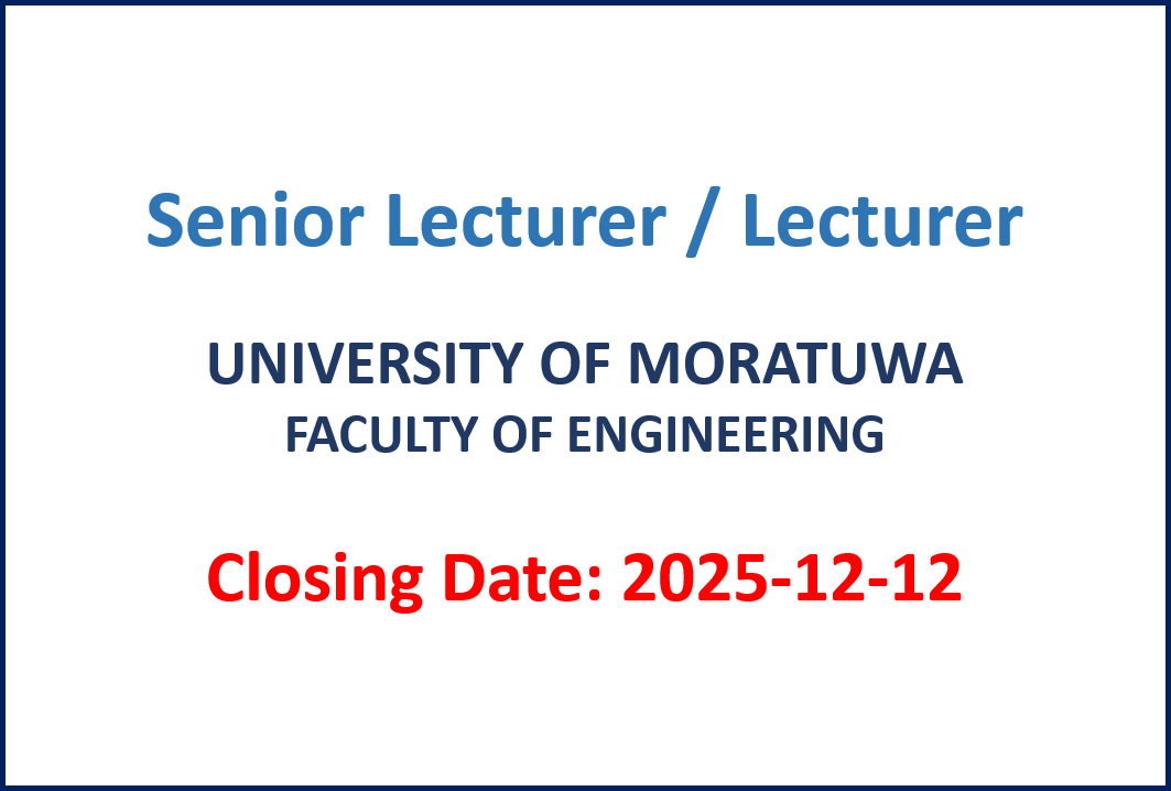 Senior Lecturer / Lecturer – UNIVERSITY OF MORATUWA, FACULTY OF ENGINEERING