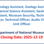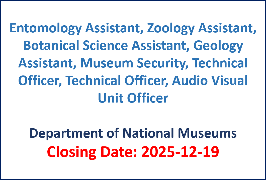 Entomology Assistant, Zoology Assistant, Botanical Science Assistant, Geology Assistant, Museum Security, Technical Officer, Technical Officer, Audio Visual Unit Officer – Department of National Museums