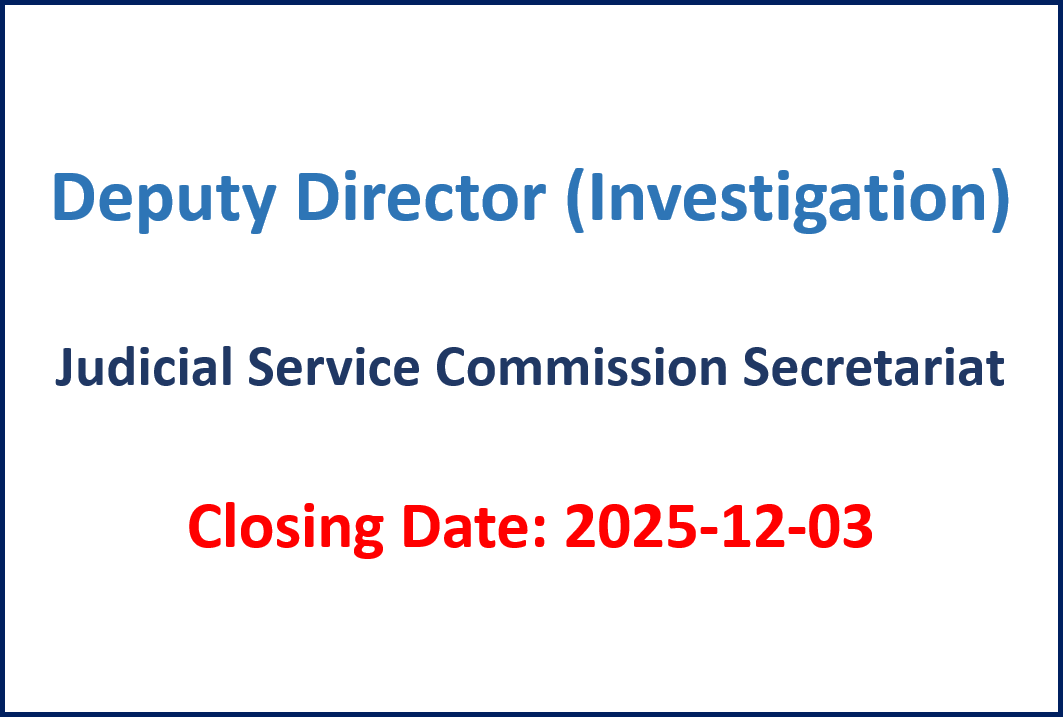 Deputy Director (Investigation) – Judicial Service Commission Secretariat 2025-11-09 Closing Date: 2025-12–03 Details Source : Government Gazette – 2025/11/07