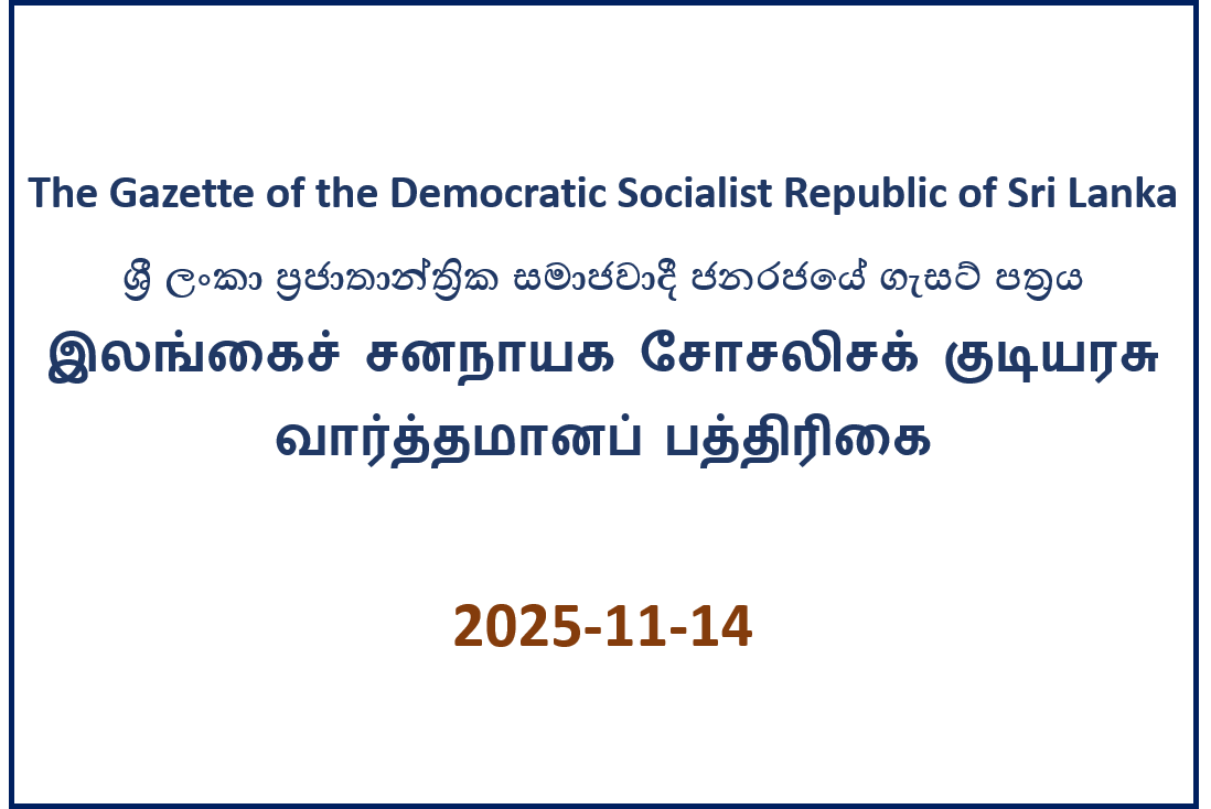 The Gazette of the Democratic Socialist Republic of Sri Lanka – 2025-11-14