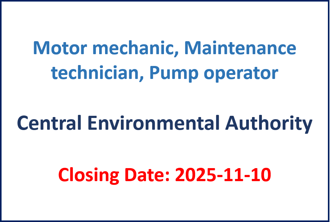 Motor mechanic, Maintenance technician, Pump operator – Central Environmental Authority Closing Date: 2025-11-10 Details – Sinhala Salary Scale : 42,300 – 10×490 – 10×540 – 10×590 -12×630 – 66,060 Source…