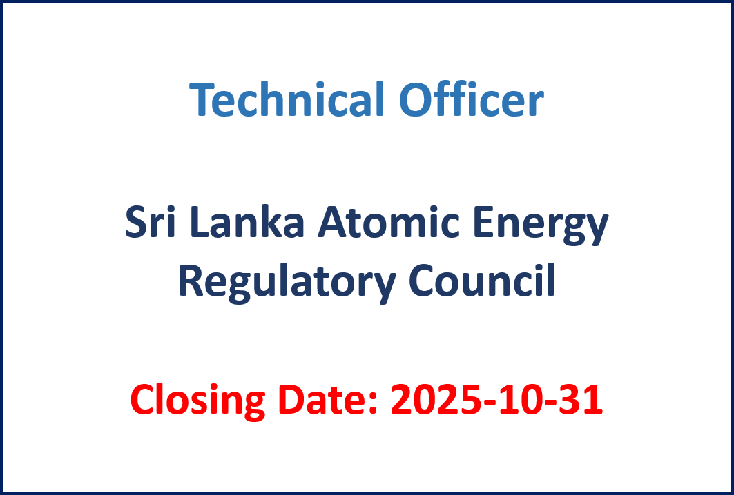 Technical Officer – Sri Lanka Atomic Energy Regulatory Council Details – English Details – Sinhala Application Closing Date 2025-10-31 Source Sri Lanka Atomic Energy Regulatory Council (www.aerc.gov.lk) Sri Lanka’s…
