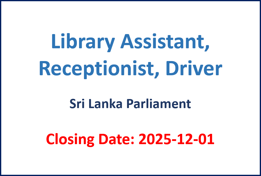Library Assistant, Receptionist, Driver – Sri Lanka Parliament 2025-11-162025-11-16 Closing Date: 2025-12-01 Details – Sinhala Source : Government Gazette 2025-11-14