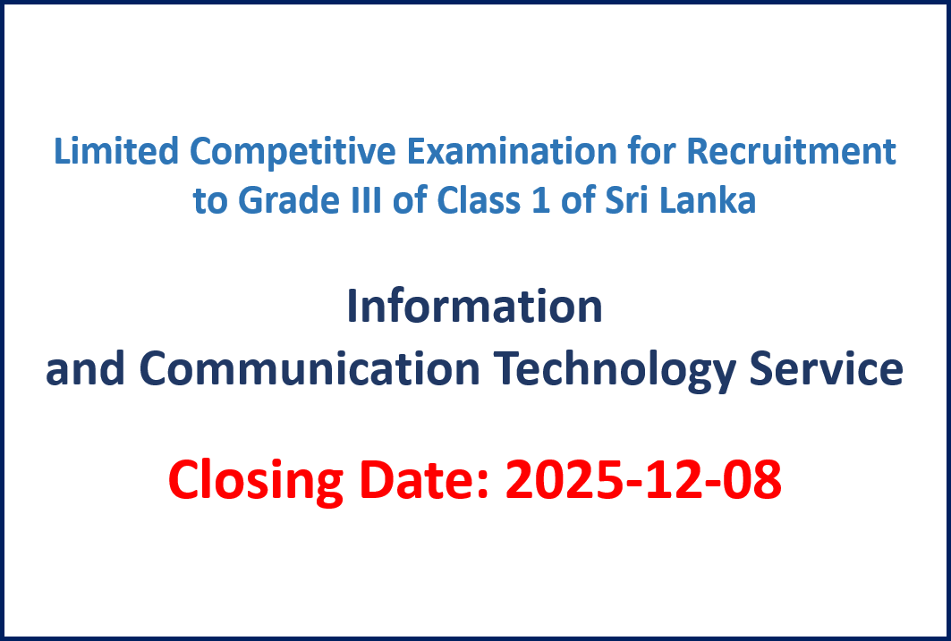 Limited Competitive Examination for Recruitment to Grade III of Class 1 of Sri Lanka Information and Communication Technology (ICT) Service Closing Date: 2025-12–08 Details – Sinhala Details – English Amendment