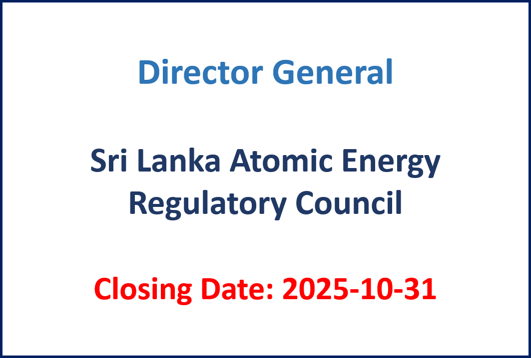 Details – English Details – Sinhala application Closing Date 2025-10-31 Source Sri Lanka Atomic Energy Regulatory Council (www.aerc.gov.lk) Sri Lanka’s…
