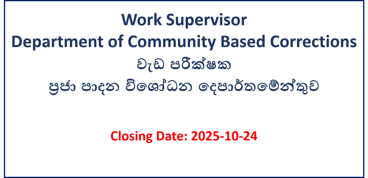 Work Supervisor – Department of Community Based Corrections Recruitment of Work Supervisor belongs to NonTechnical Management Assistants- Segment 2 ofDepartment of Community Based Corrections(Open)-2025 Closing Date – 2025-10-24…