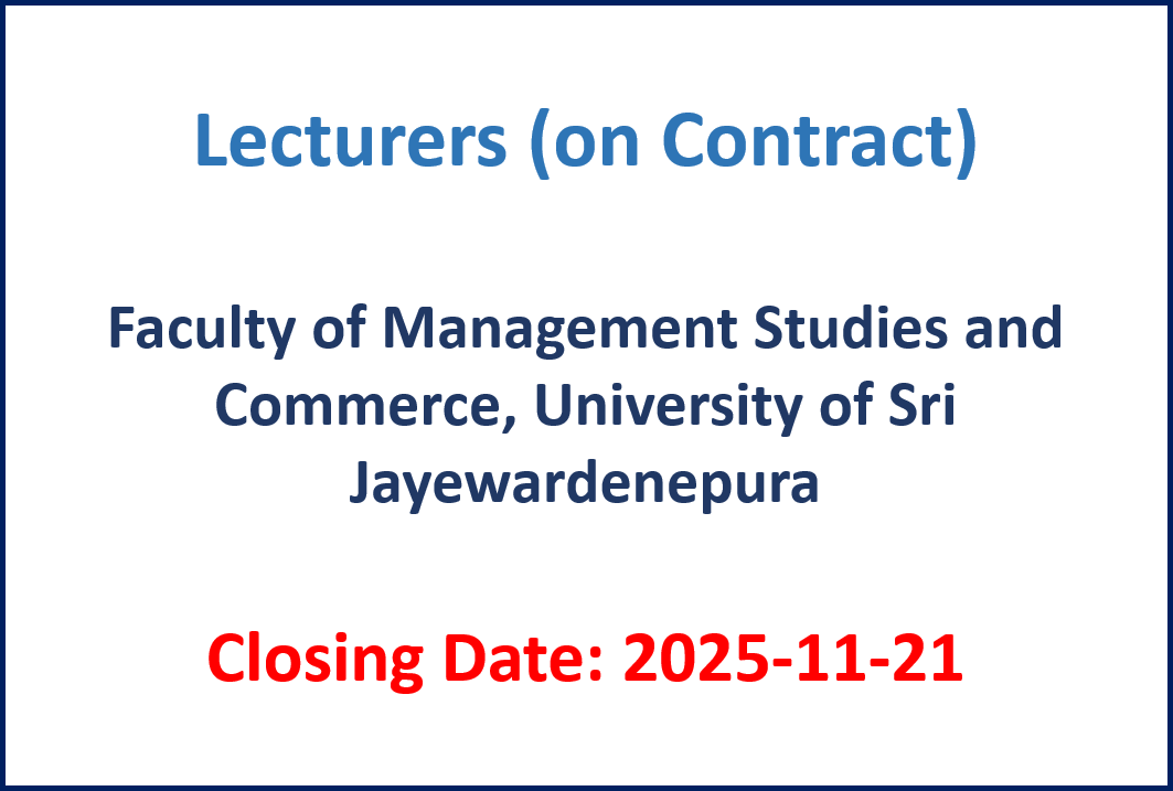 Lecturers (on Contract) – Faculty of Management Studies and Commerce, University of Sri Jayewardenepura Closing Date: 2025-11-21 Details – English