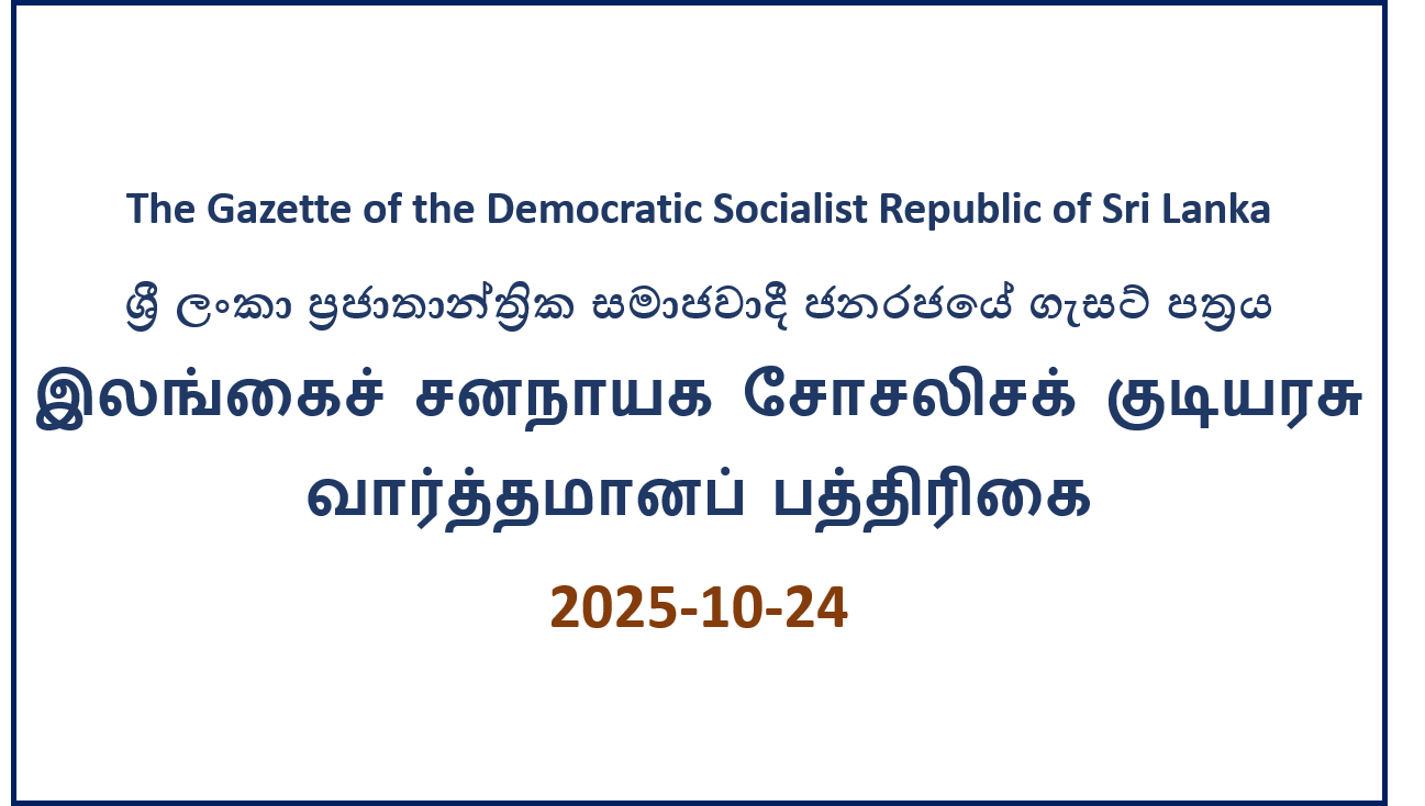 Sri Lanka Government Gazette – 2025-10-24 Preview Gazette – Sinhala – Part 1 – (IIA) – Advertising Preview Gazette – English – Part 1 – (IIA)…